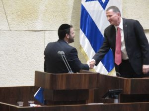 בסיום נאומו המרגש הודה לו יו"ר הכנסת ח"כ יולי אדלשטיין כשמיד קמו חברי הבית ללחוץ את ידיו והודו לו על נאומו המרגש כשבמרכז אביו הניח את שני ידיו על ראשו ובירכו בברכת כהנים.