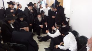 בתמונות: הרב חנניה צולק יו"ר עזר מציון ובנו של ראש הישיבה הרב שטיימן בניחום אבלים.