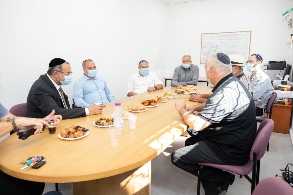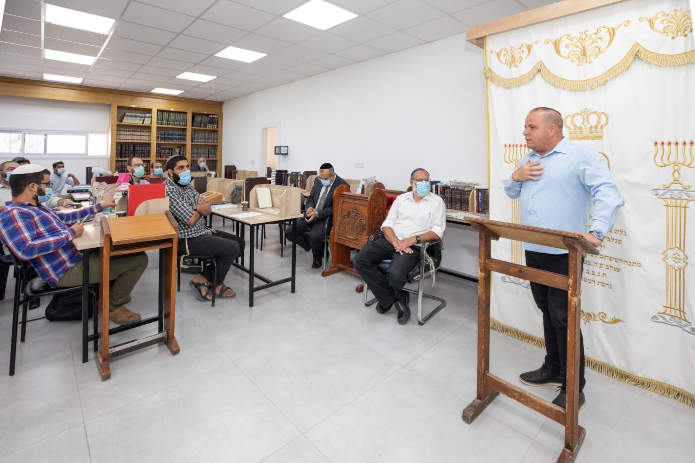 עוד נכחו, שר הדתות, הרב יעקב אביטן, רב הישיבה, ערן טמיר, הרב אליהו פלאח וחניכי הישיבה.