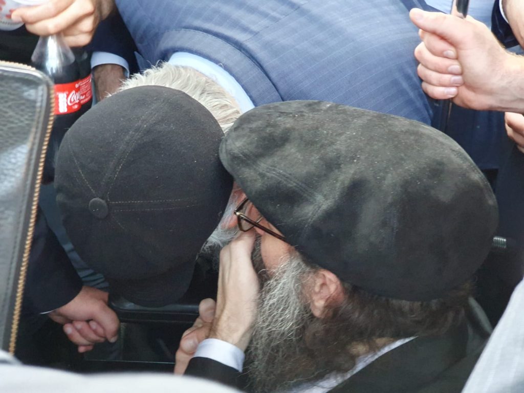 סרטון של כבוד האדמו"ר ברגעיו הראשונים ביציאה מהטרמינל