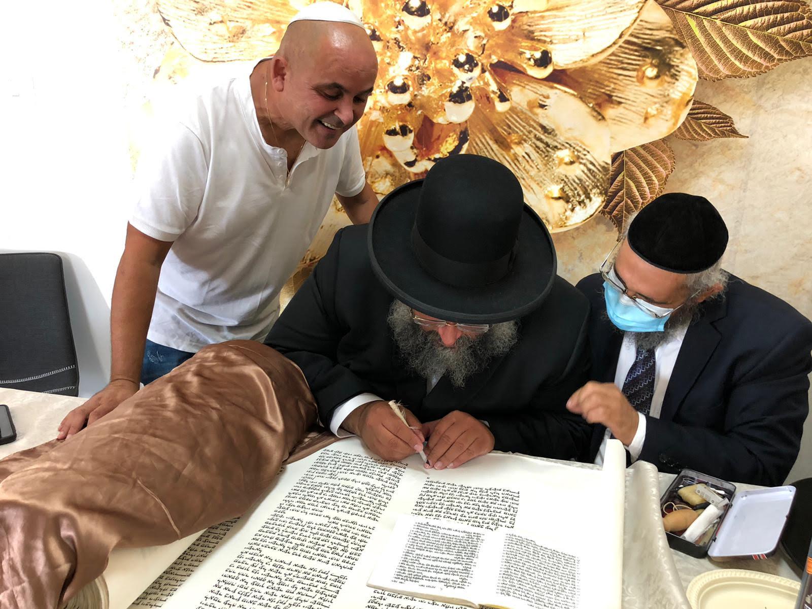 בסיום כתיבת האותיות יצאו מבית המשפחה בתהלוכה לכיוון בית הכנסת, נזכיר רק כי ממש בימים אלו נשלמת בניית מבנה הקבע של בית הכנסת השכונתי ע"י העירייה.