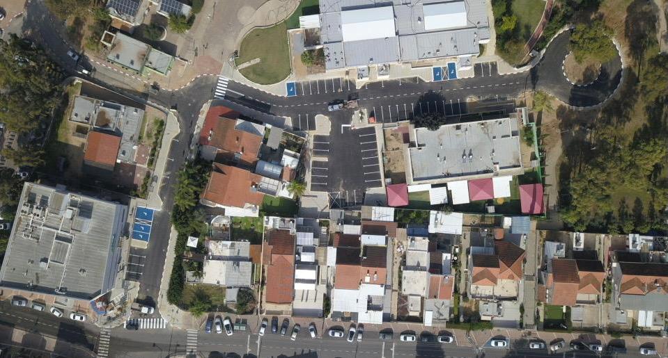 תמונות של הרחוב לפני ואחרי השיפוץ. צילום רחפן: באדיבות החברה הכלכלית לפיתוח שדרות