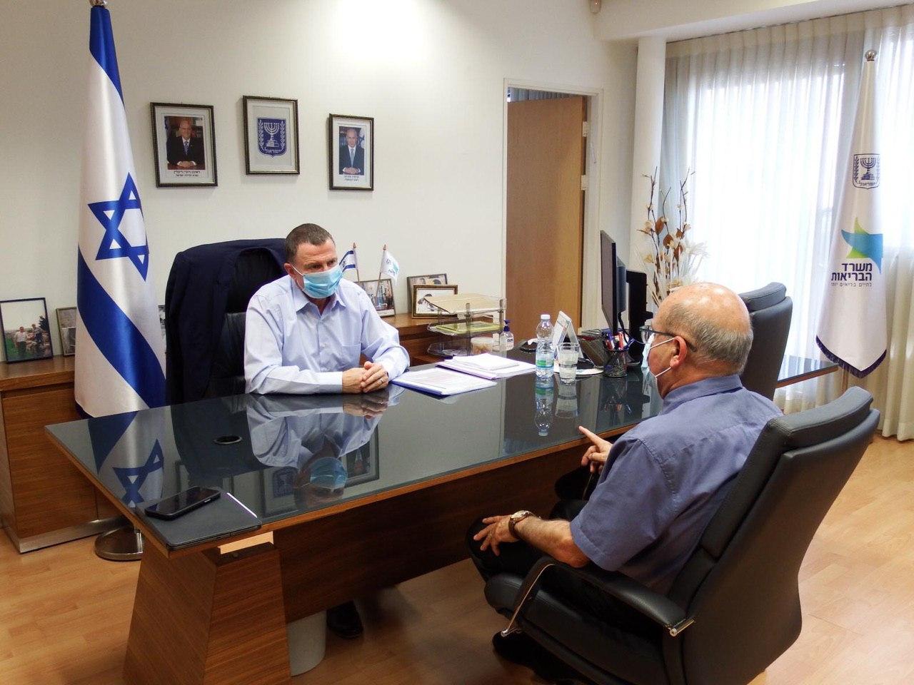 שר הבריאות יולי יואל אדלשטיין וסגן השר יואב קיש ביקרו היום במרכז הרפואי של מכבי בבני ברק. צוות מכבי הציג בפניהם נתונים רבים על הפעילות בשגרה ולאורך משבר הקורונה. דגש מיוחד ניתן לאשפוזי הבית, מתן שרות רפואי מתקדם בבית המטופל, משלוח תרופות אל חולים מורכבים וקשישים לאורך מגיפת הקורונה ועוד.